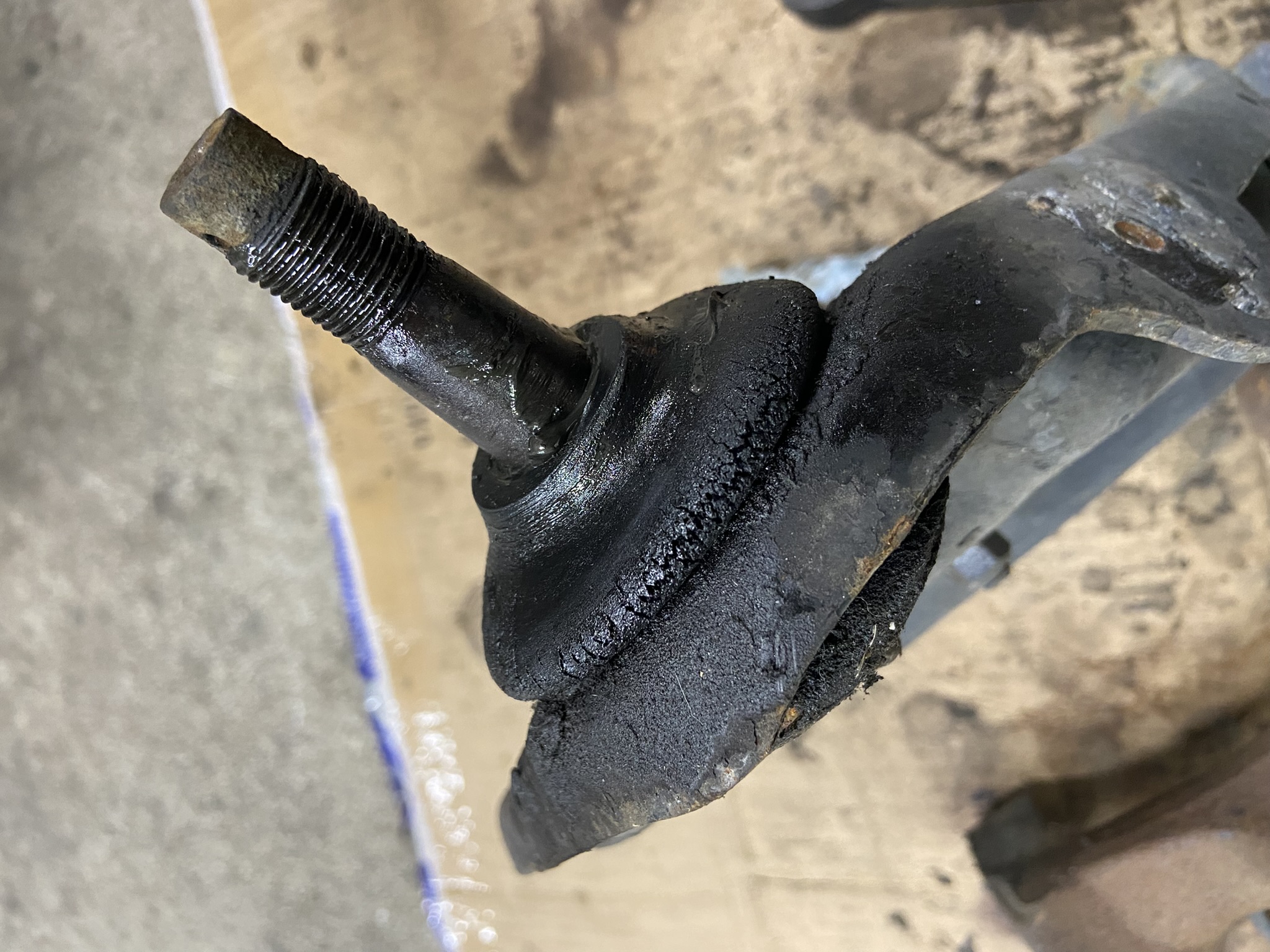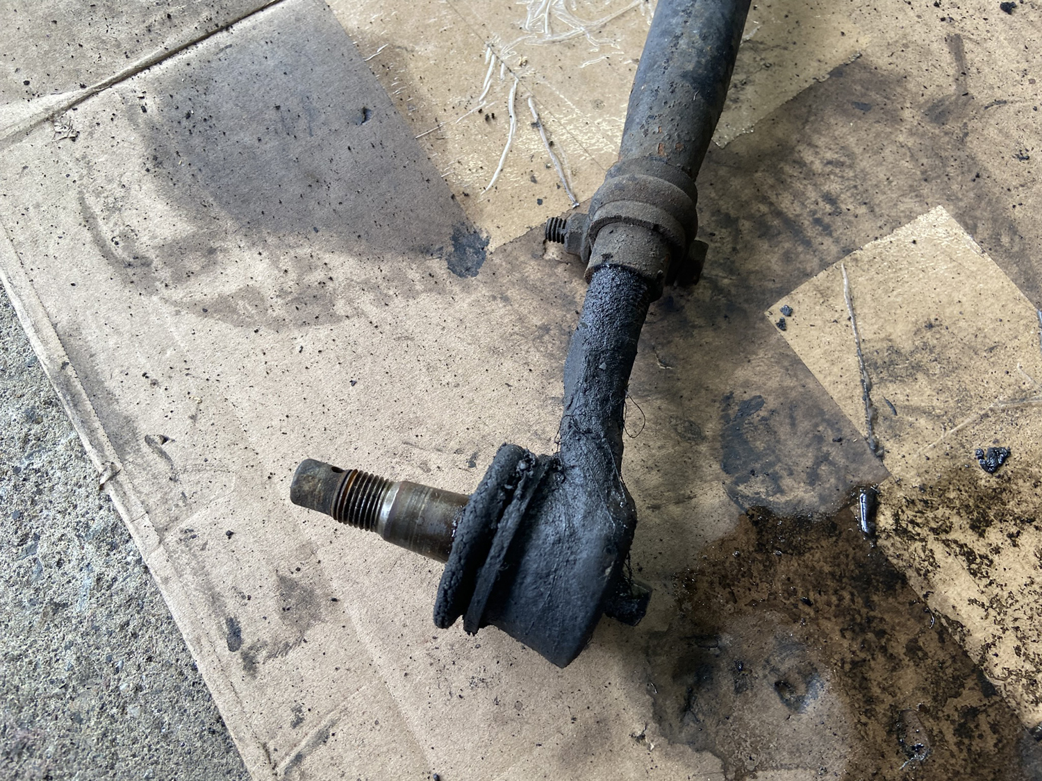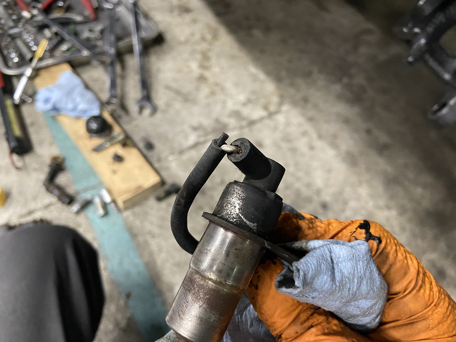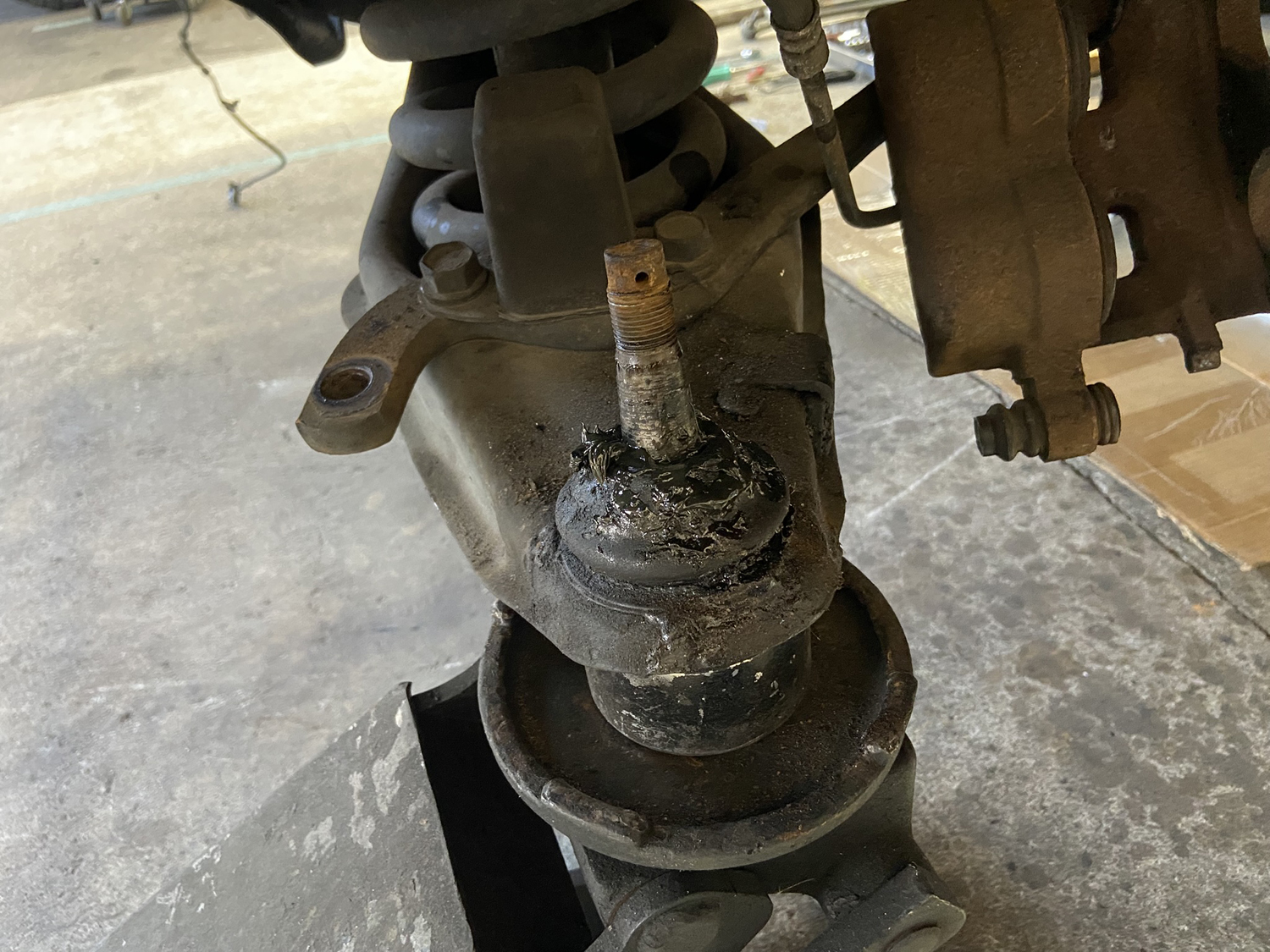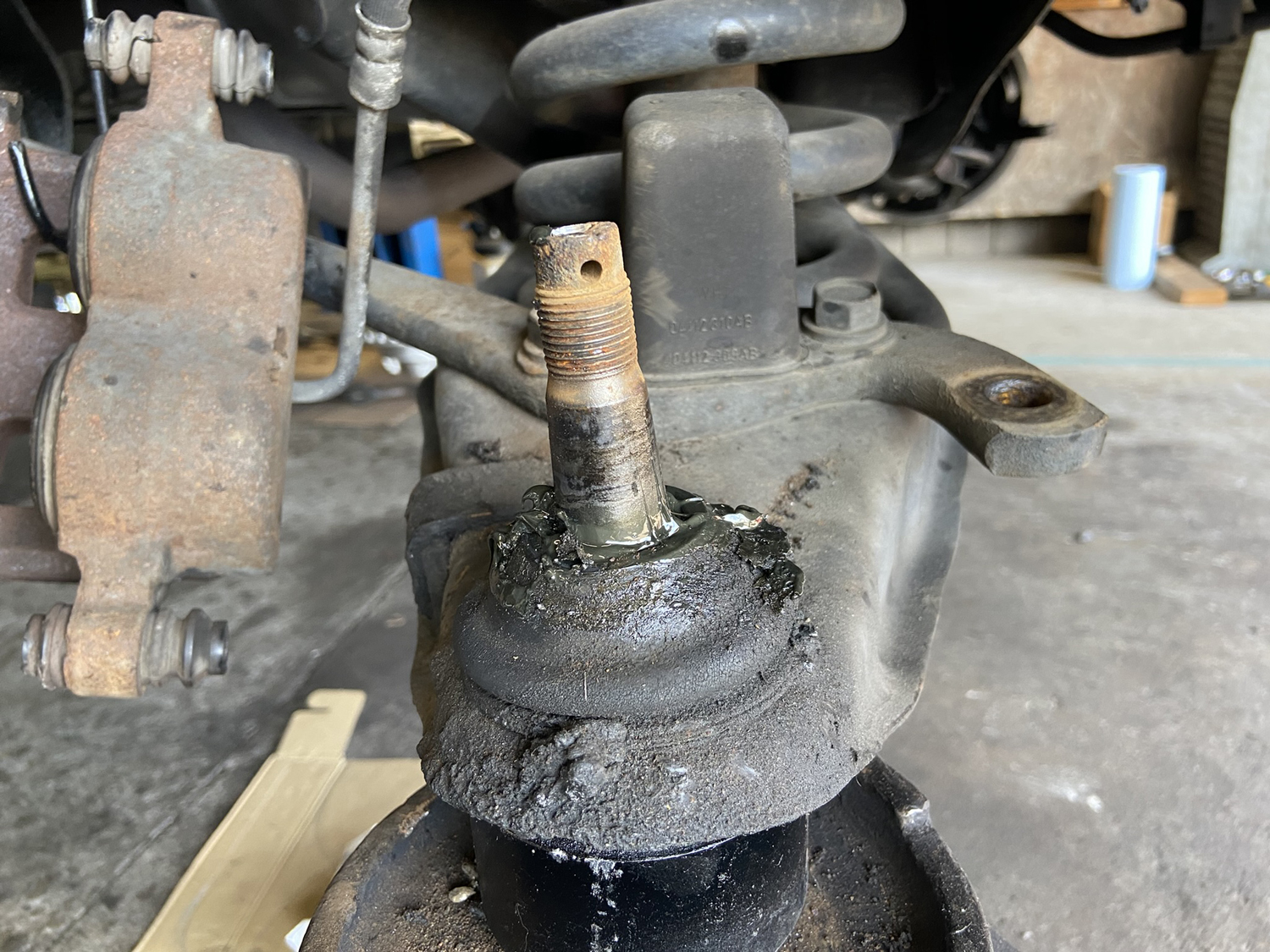 あふれたグリスが長い時間をかけて固まり、ブーツも劣化しほぼ破れているに近い状態。