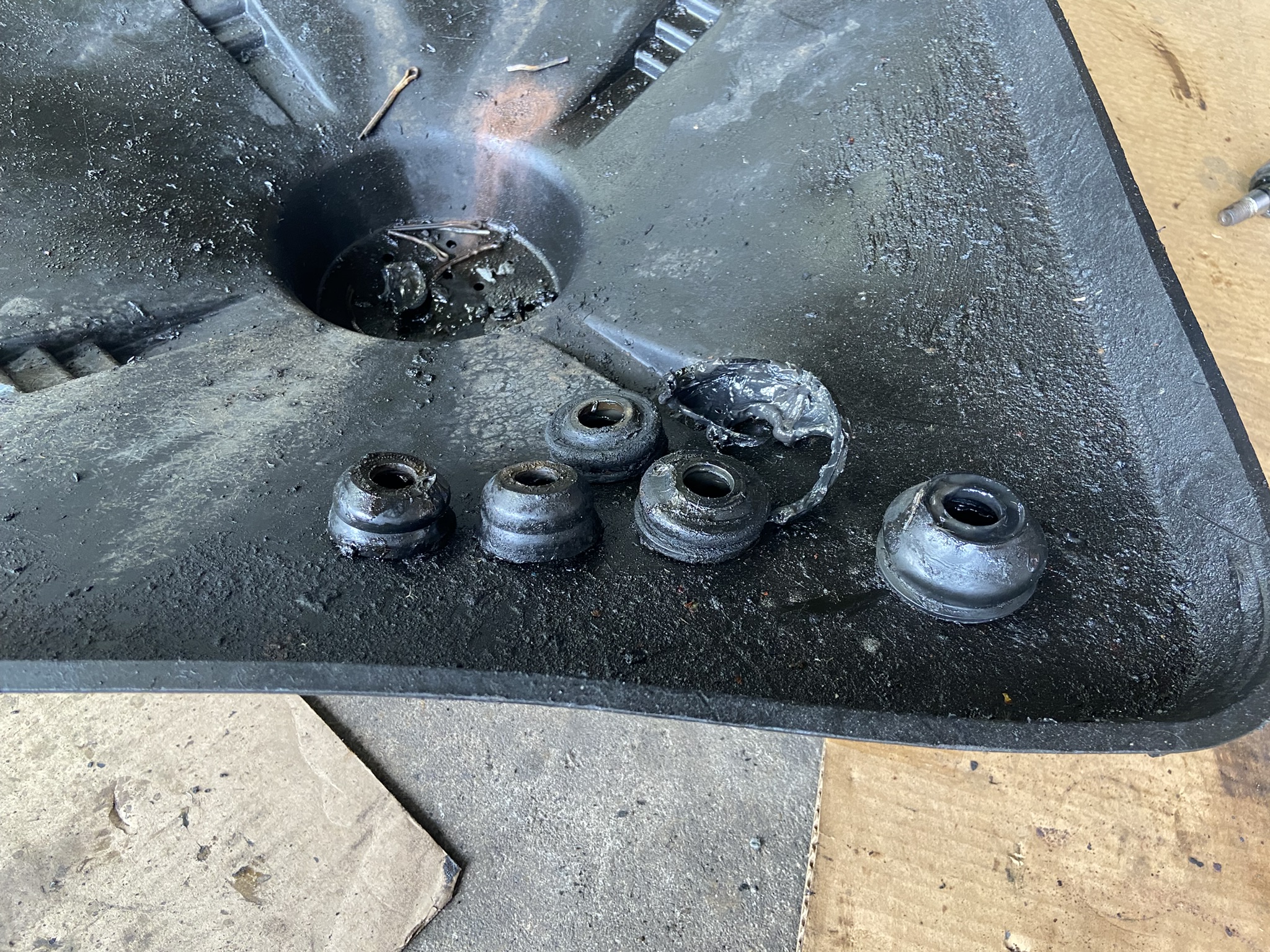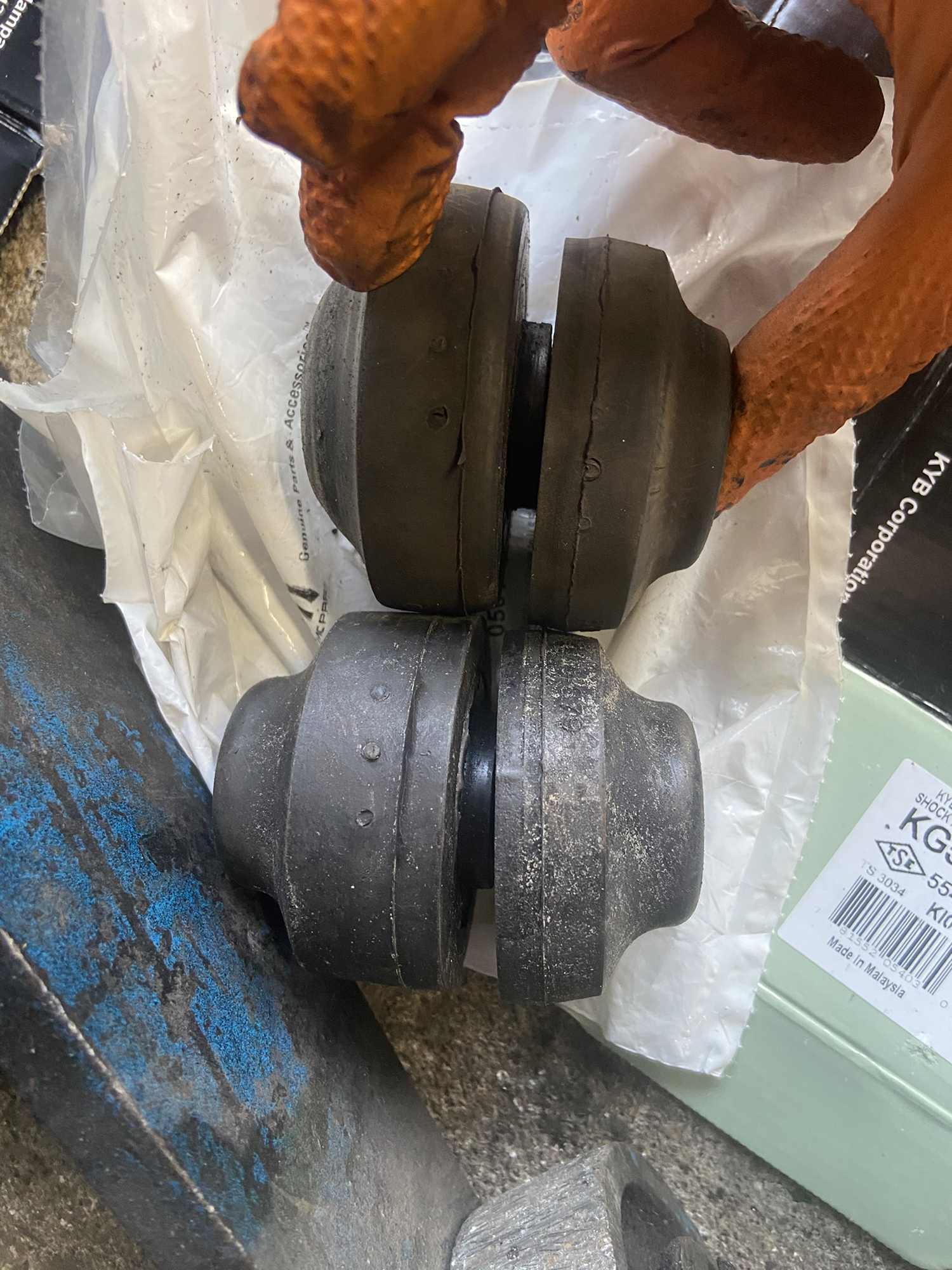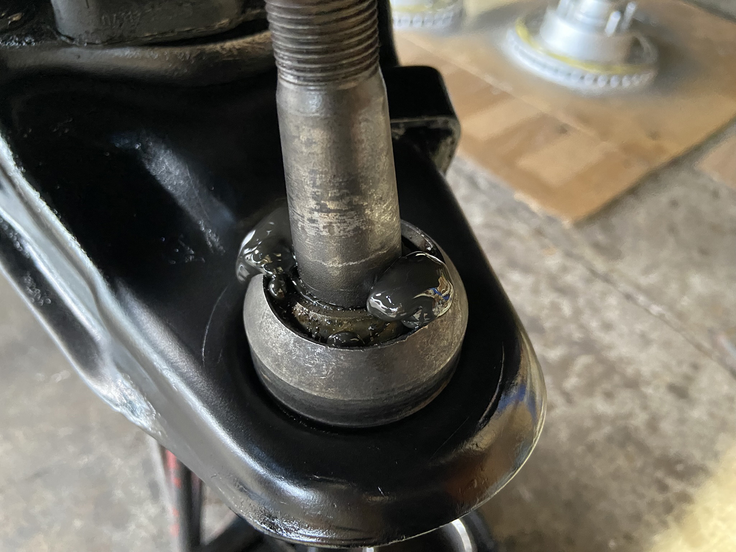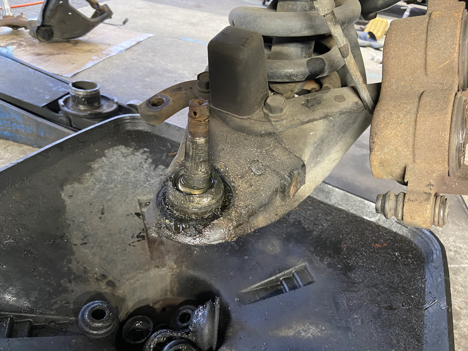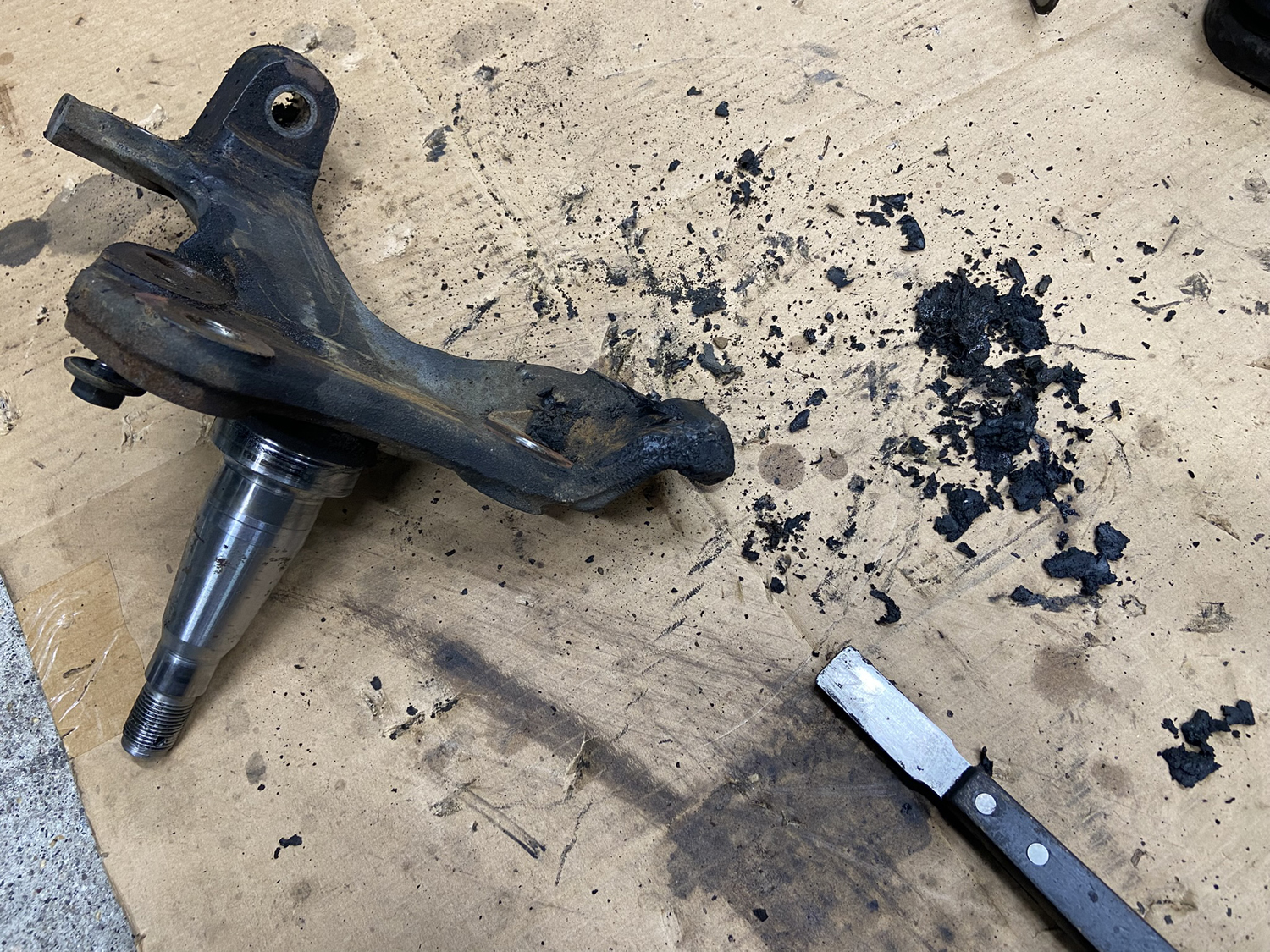 あふれたグリスが長い時間をかけて固まり、ブーツも劣化しほぼ破れているに近い状態。
