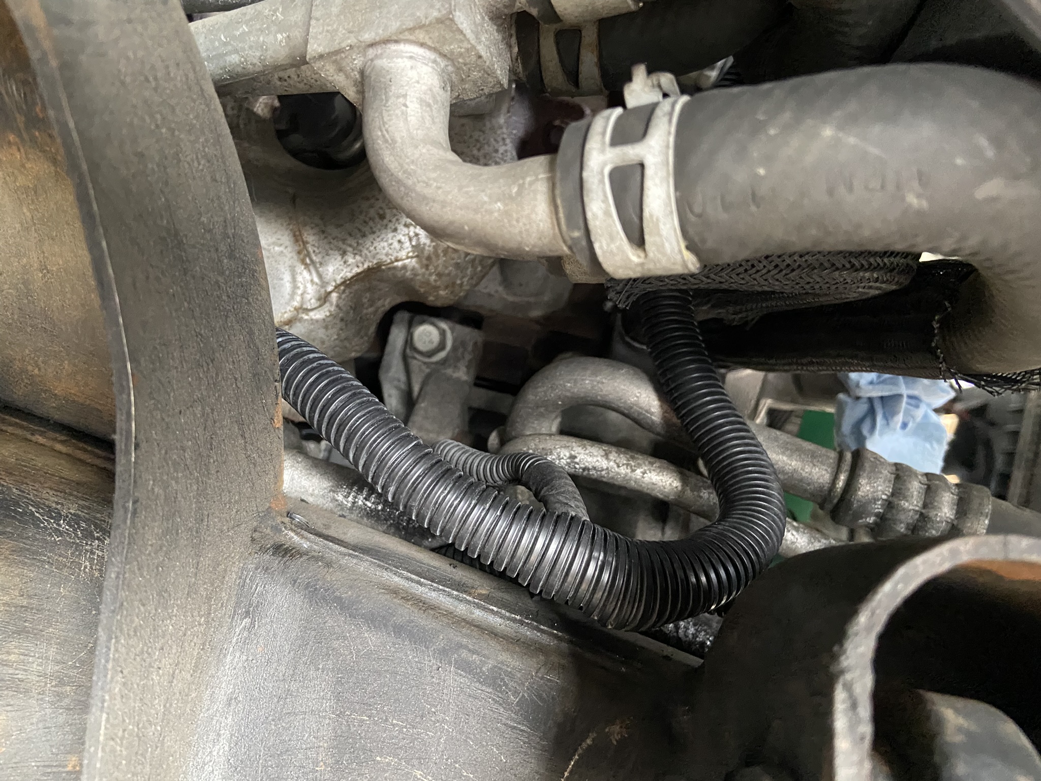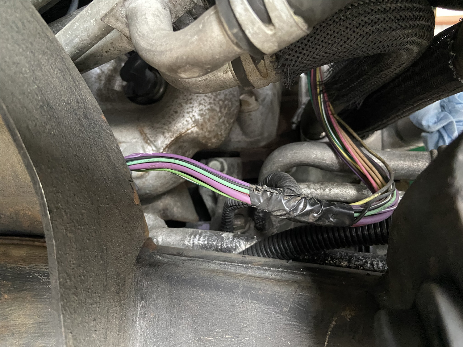 熱で劣化し触ると粉々になる痛んだ配線チューブ。