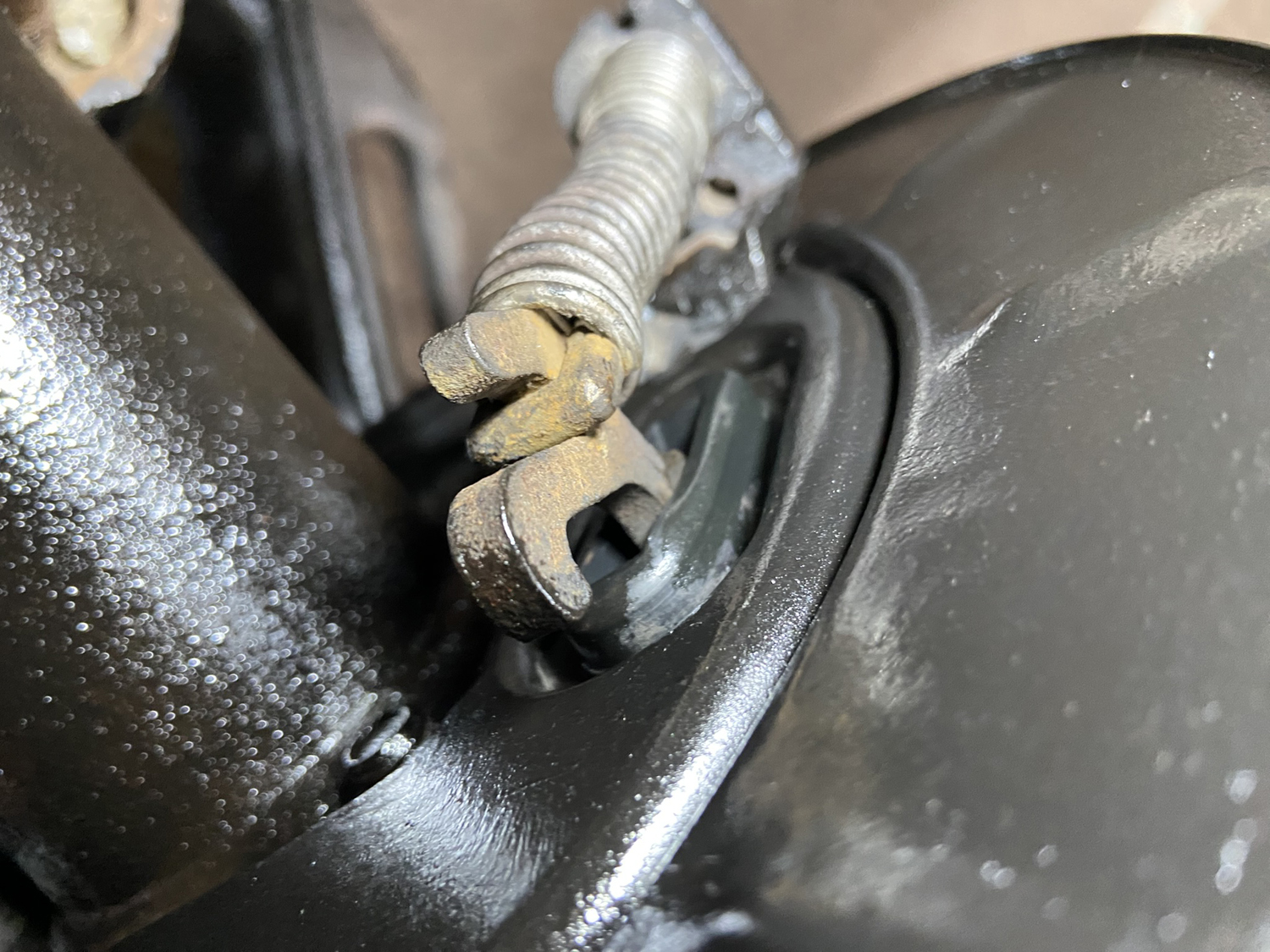マフラーも燃料タンクも不在なので、普段は手が入らない部分も今なら届きます。