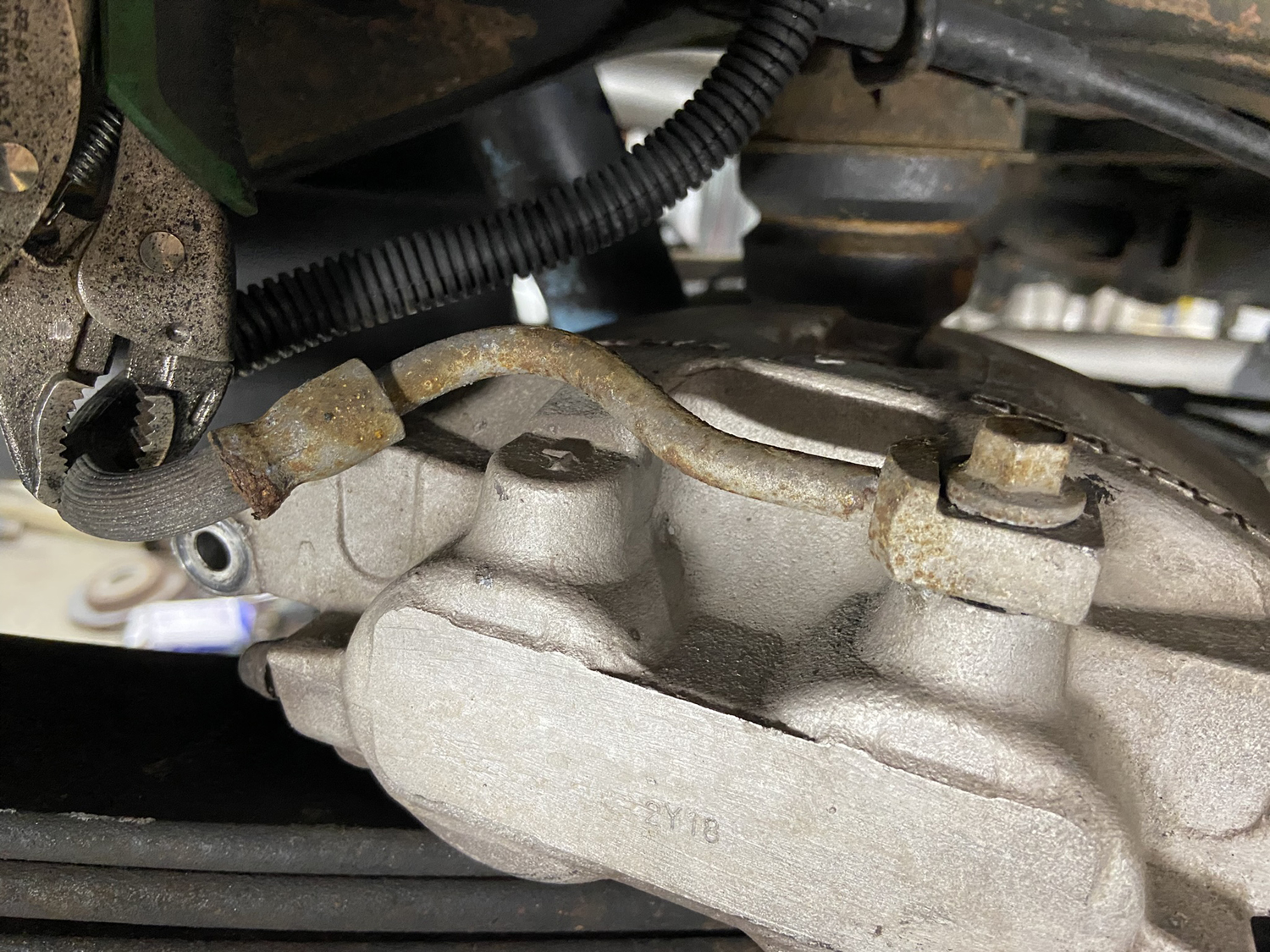 恐ろしい点検を怠ると千切れるこの手のGM車フロントブレーキホース。