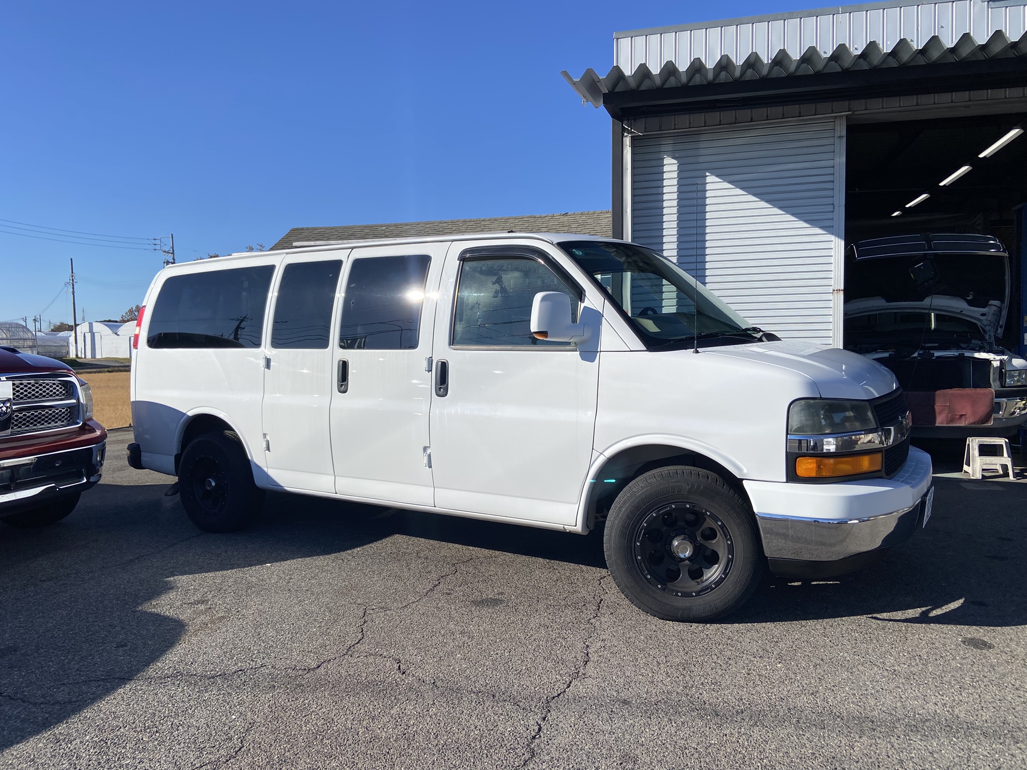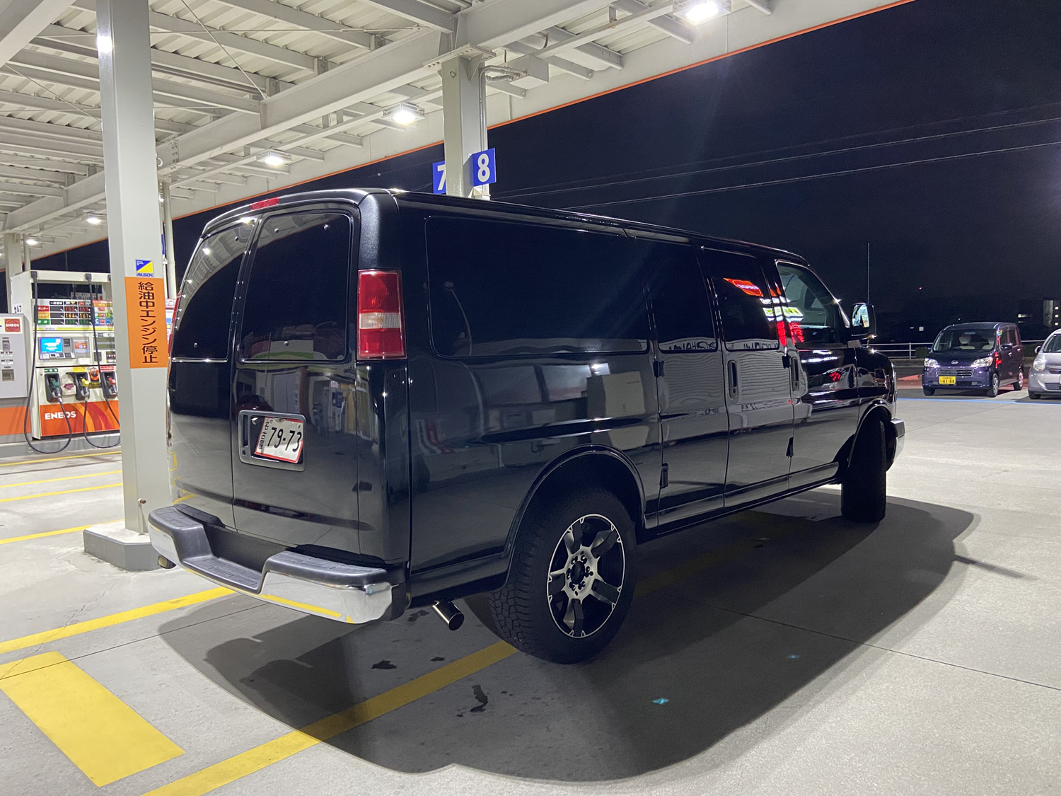 後ろのシボレー エクスプレスのエンブレムは剥がしたのか?