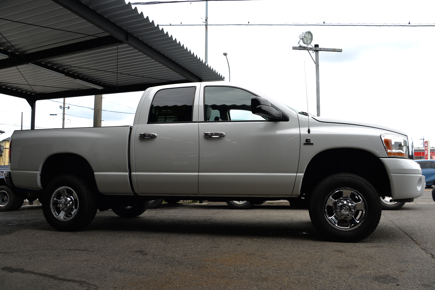 | 2006年式 ダッジラム3500クアッドキャブ ララミー、カミンズターボディーゼル5.9L、4WD、サイドステップ、運転席、助手席パワーシート、ベンチシート、インフィニティオーディオ 2インチリフトアップ 同色全塗装済み SOLDOUT |