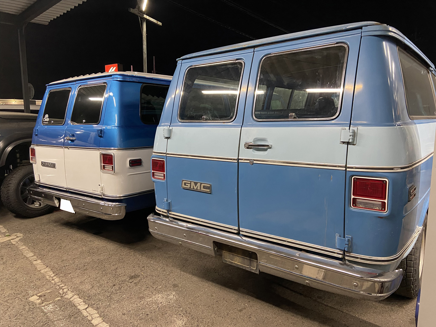 似ている2台ですがよく見ると色々な所が違うシボレーとGMC。