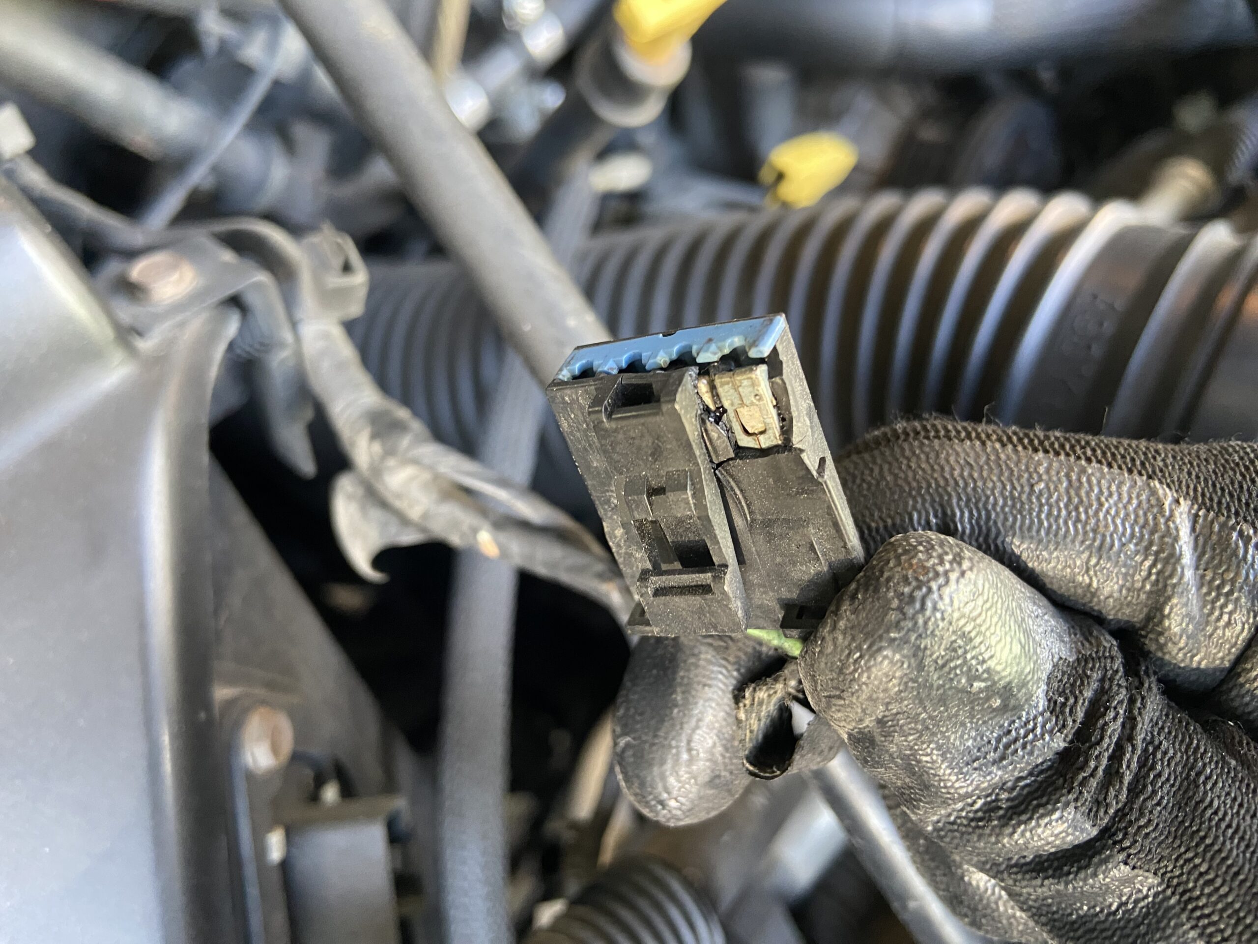 破損しているブロアレジスターのコネクター。