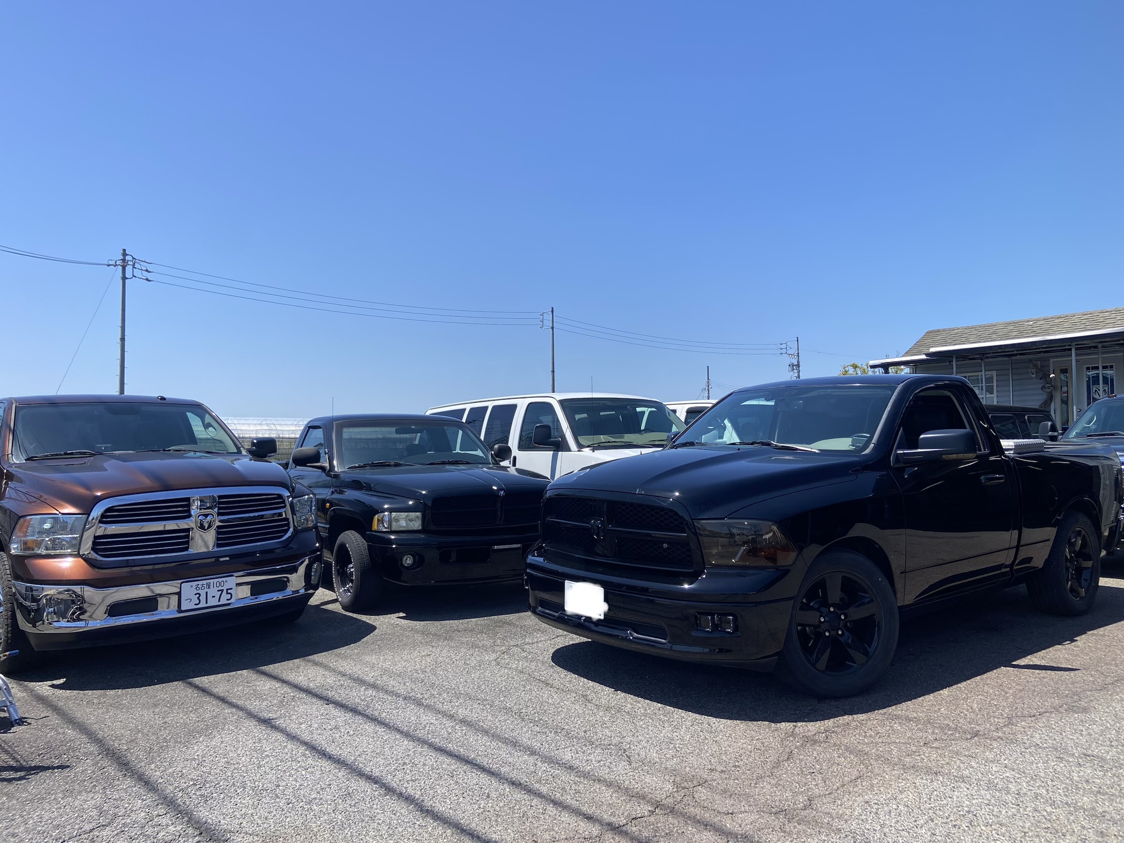 ダッジラムトラック、ダッジラムバン、他メーカーのアメ車のトラック、バンや新車並行車、ターボディーゼル搭載のアメ車、巨大なデューリー等。