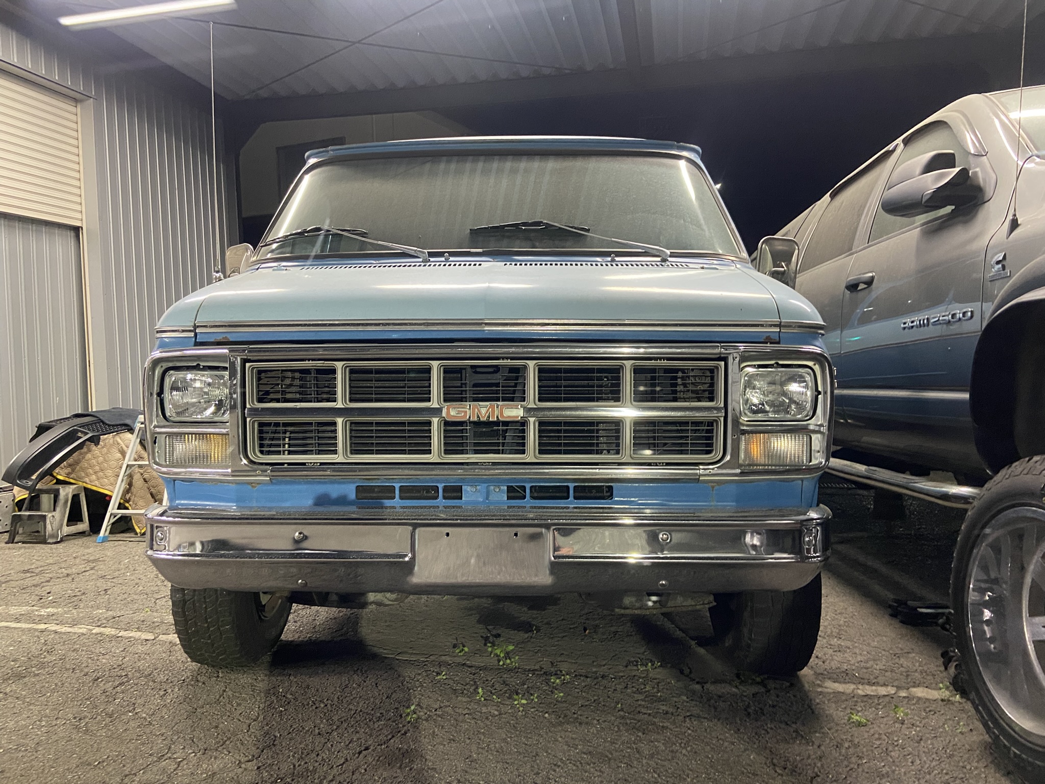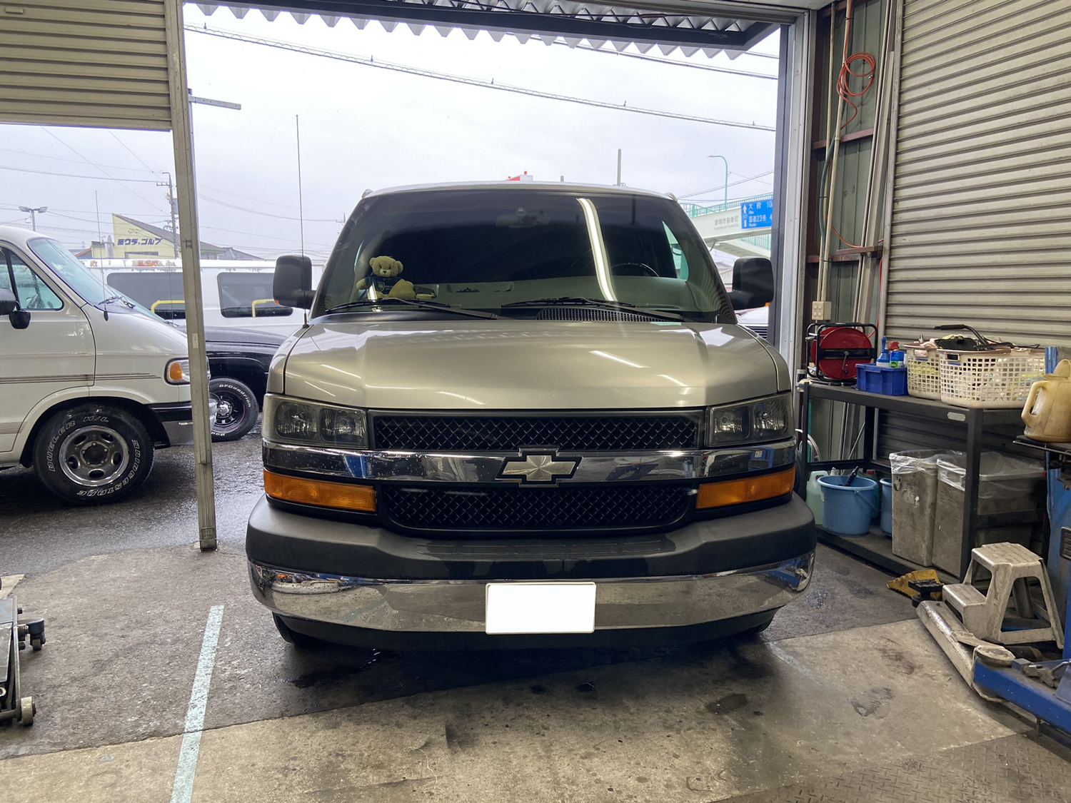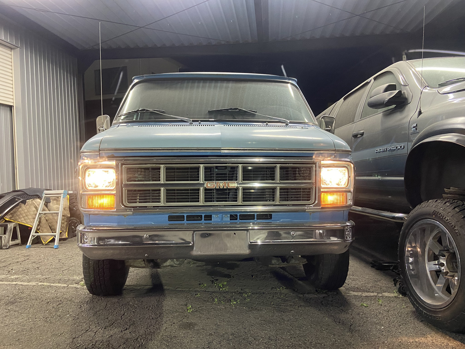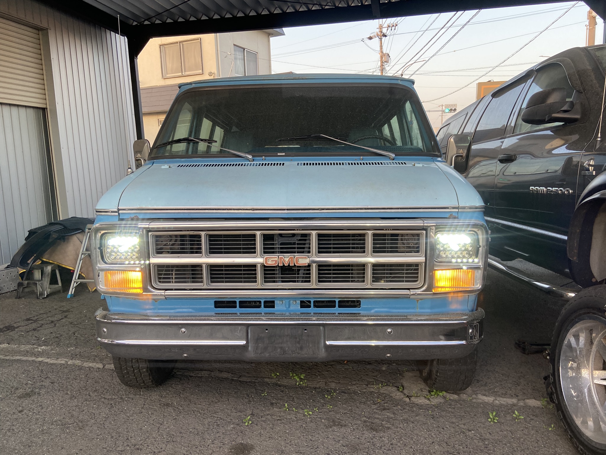 在庫車のラリーバンは似合っていないLEDヘッドライトから、