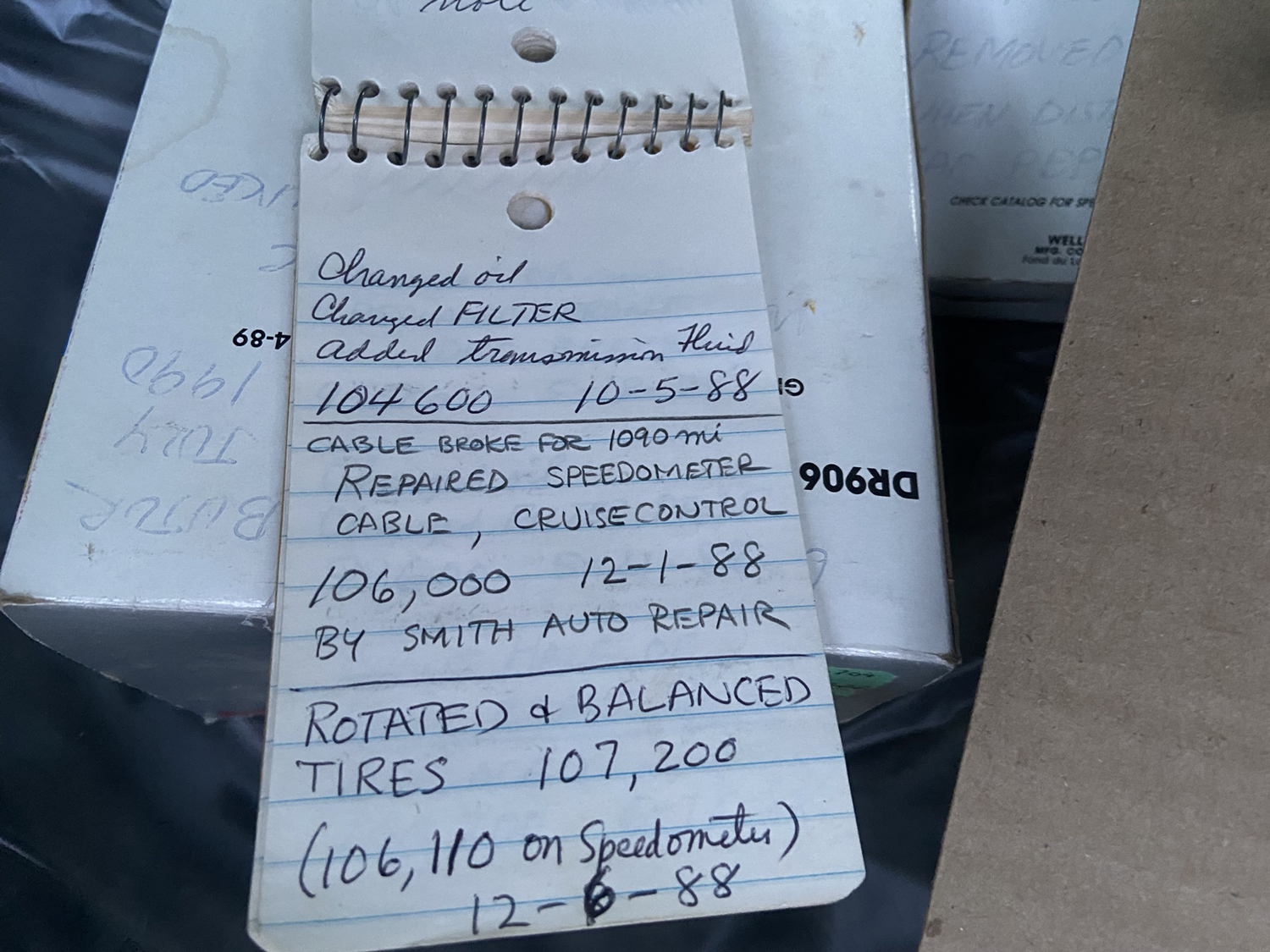車内には前オーナーが残した整備や行った場所のメモが入っています。